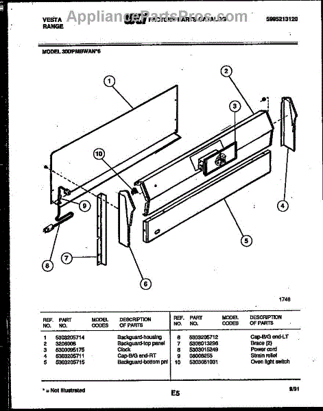 Parts for Frigidaire 30DPMBWAN6: 02 - Backguard Parts