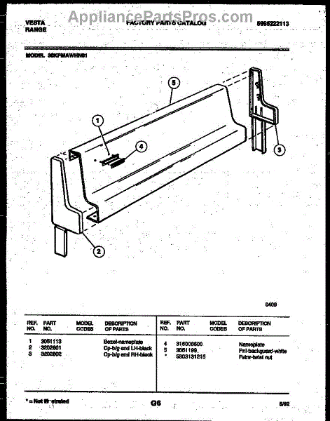 Parts for Frigidaire 30KPMAWHN1: 02 - Backguard Parts