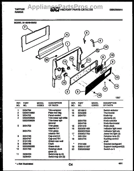 Parts for Frigidaire 31-2549-00-02: 03 - Backguard Parts