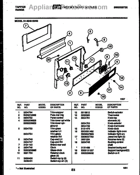 Parts for Frigidaire 31-2549-00-03: 03 - Backguard Parts