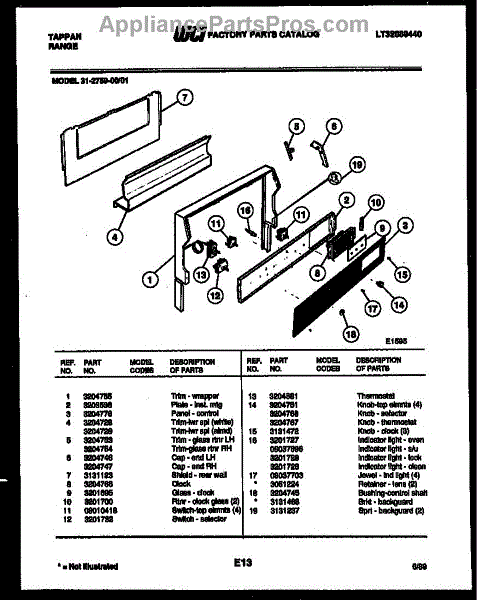 Parts for Frigidaire 31-2759-23-01: 07 - Backguard Parts