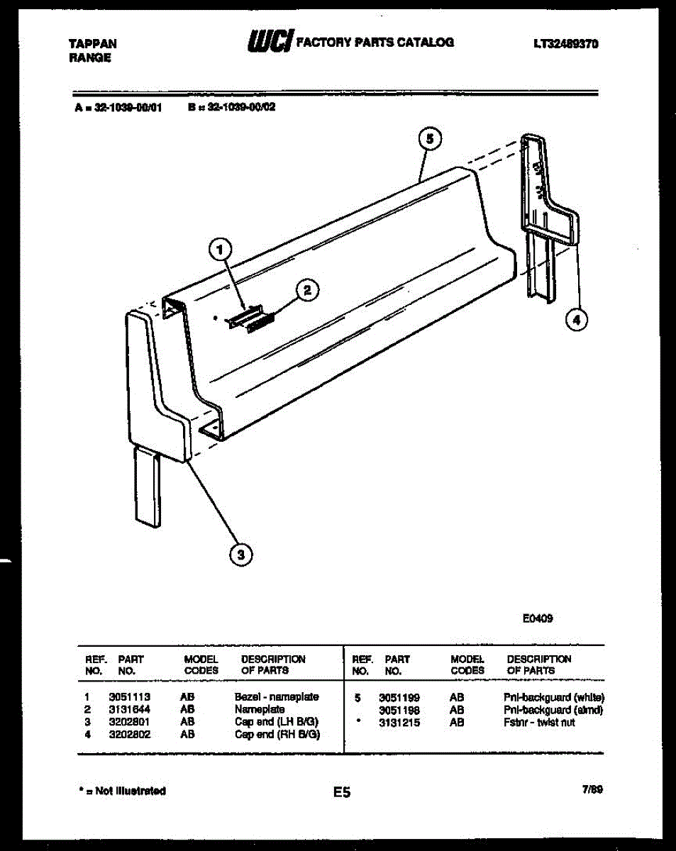 Parts for Frigidaire 32-1039-00-02: 02 - Backguard Parts