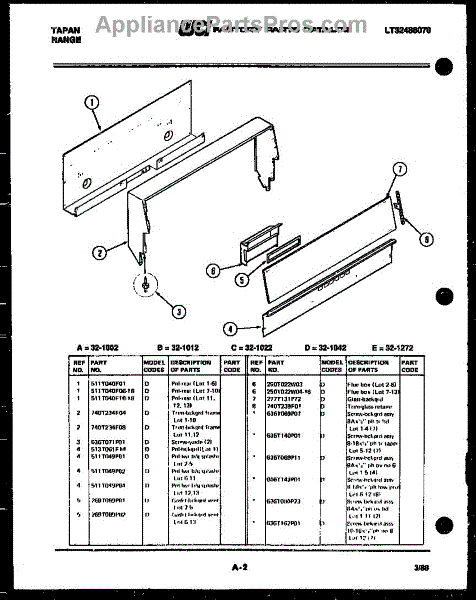 Parts for Frigidaire 32-1042-45-10: 02 - Backguard Parts