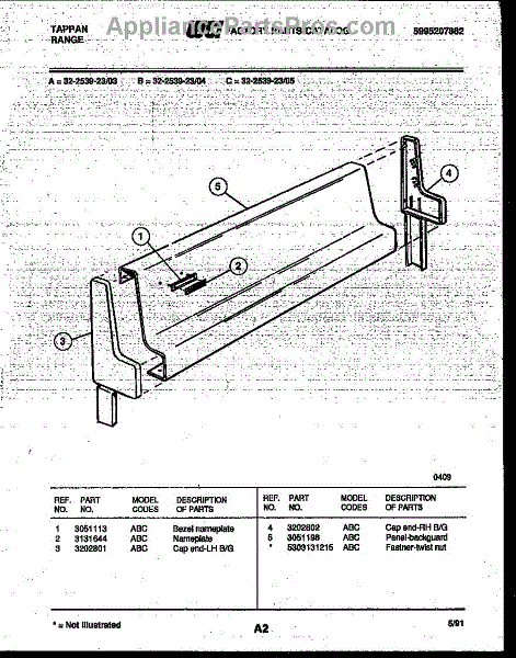 Parts for Frigidaire 32-2539-00-03: 02 - Backguard Parts