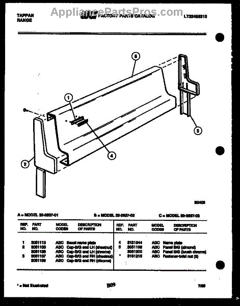 Parts for Frigidaire 32-2637-23-03: 02 - Backguard Parts