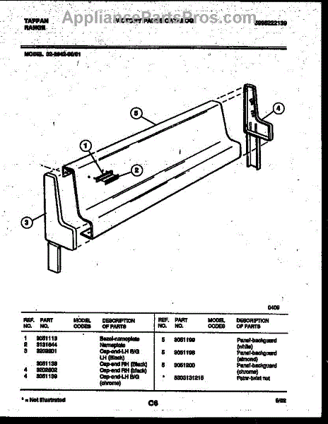 Parts for Frigidaire 32-2642-23-01: 02 - Backguard Parts