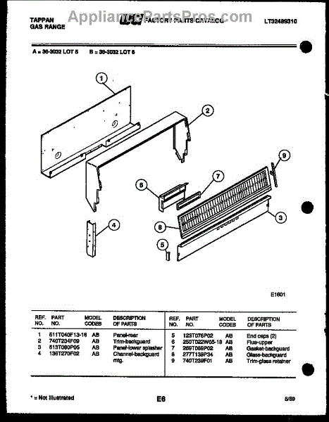 Parts for Frigidaire 36-3032-23-06: 02 - Backguard Parts