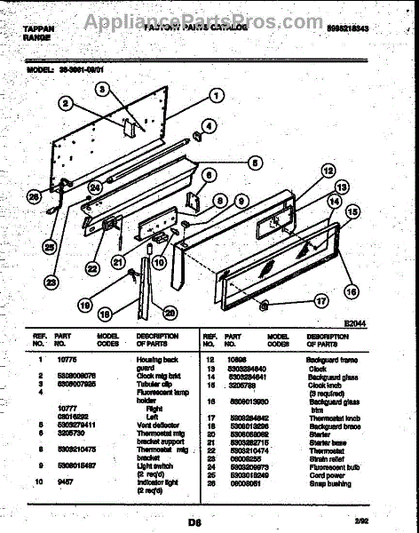 Parts for Frigidaire 36-3061-00-01: 02 - Backguard Parts