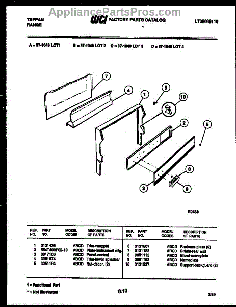 Parts for Frigidaire 37-1048-00-04: 05 - Backguard Parts