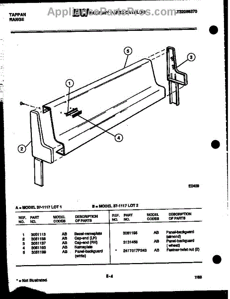Parts for Frigidaire 37-1117-66-01: 03 - Backguard Parts