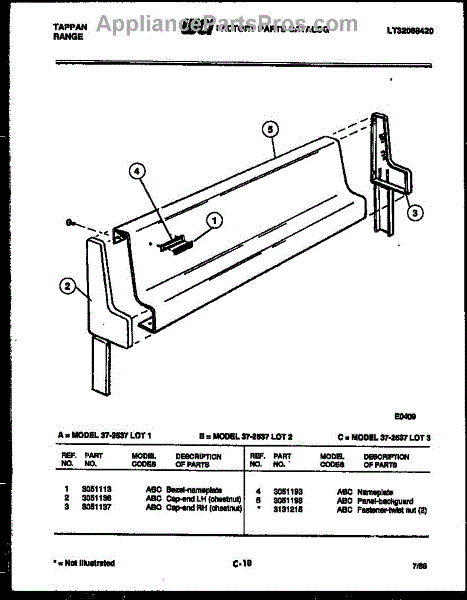 Parts for Frigidaire 37-2537-23-02: 04 - Backguard Parts