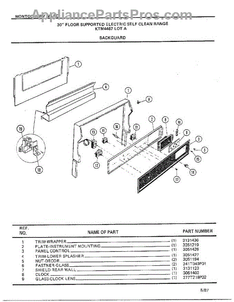 Parts for Frigidaire 4467A: Backguard Parts