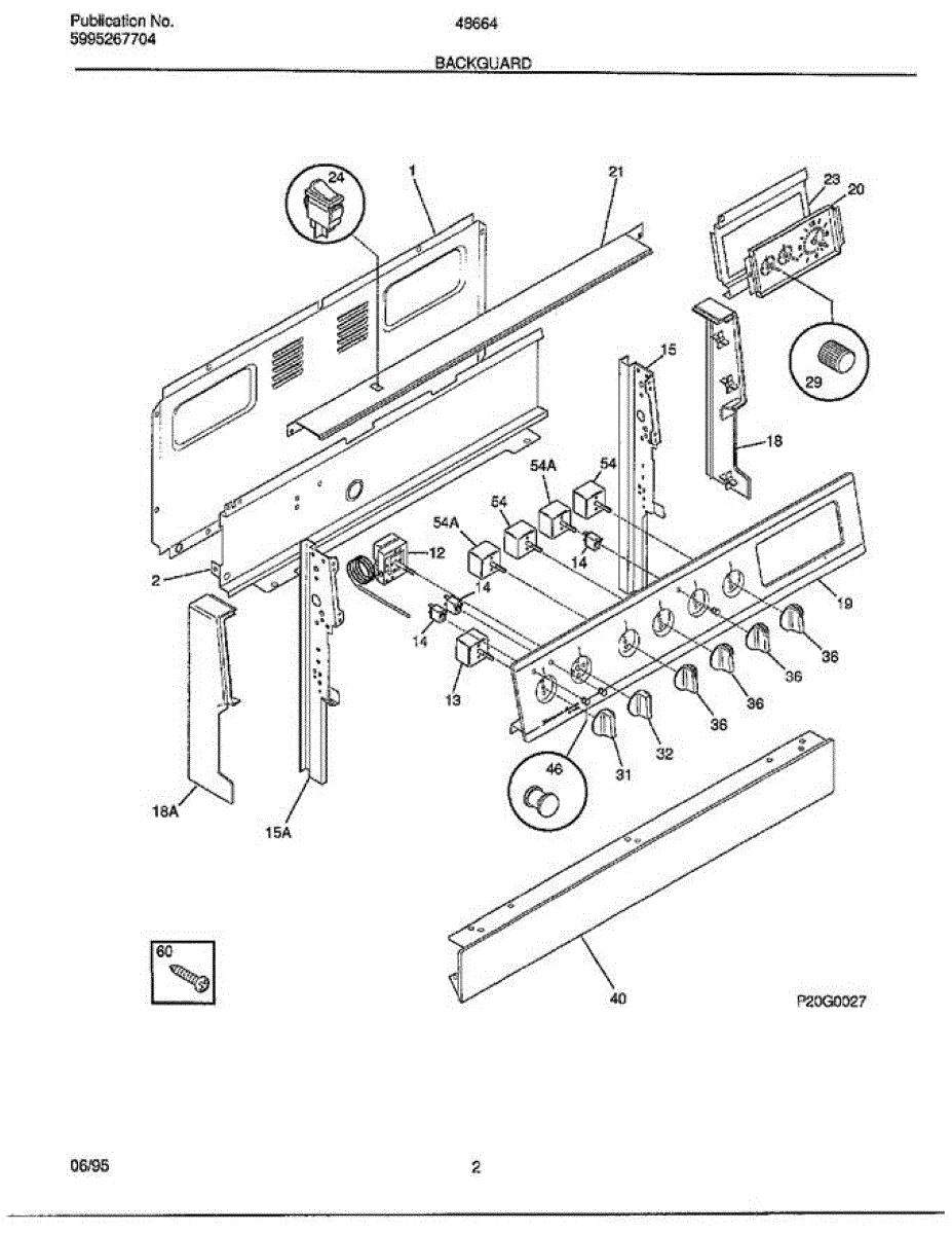 Parts for Frigidaire 48664B: Backguard Parts
