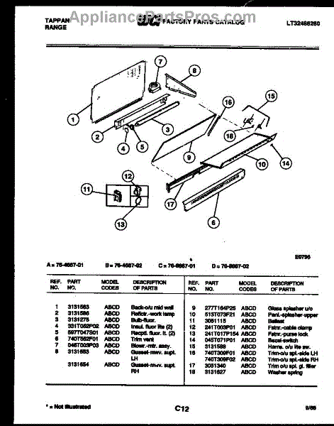 Parts for Frigidaire 76-8667-08-01: 02 - Backguard Parts