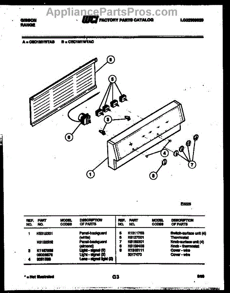 Parts for Frigidaire CEC1M1WTAB: 02 - Backguard Parts