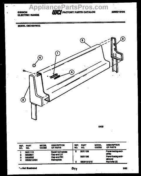 Parts for Frigidaire CEC1M1WXE: 03 - Backguard Parts