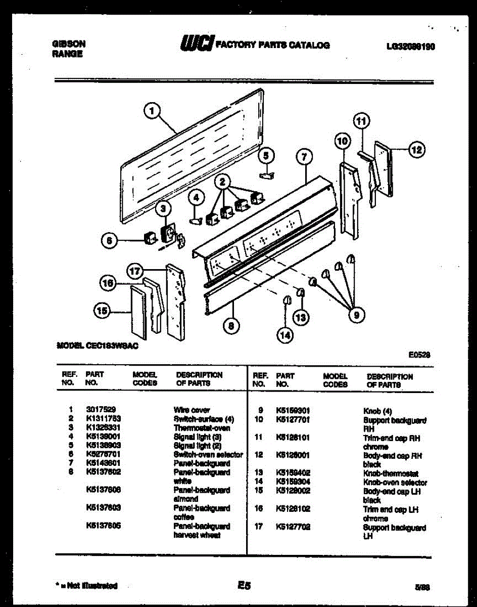 Parts for Frigidaire CEC1S3WSAC: 02 - Backguard Parts