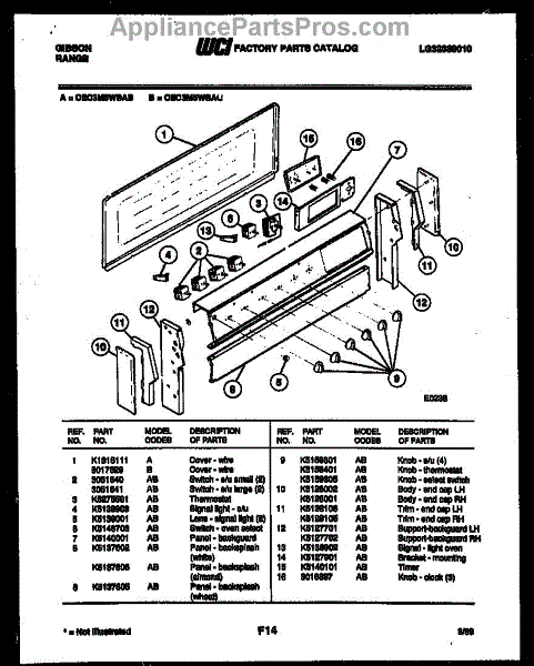 Parts for Frigidaire CEC3M5WSAC: 02 - Backguard Parts