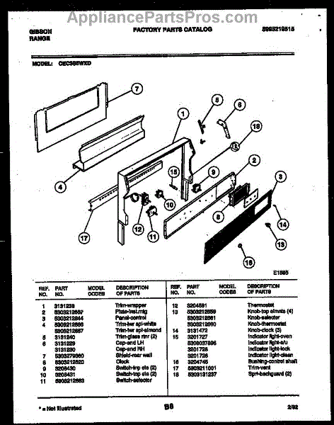 Parts for Frigidaire CEC3S5WXD: 07 - Backguard Parts