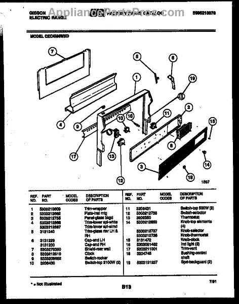 Parts for Frigidaire CEC4M4WXD: 02 - Backguard Parts