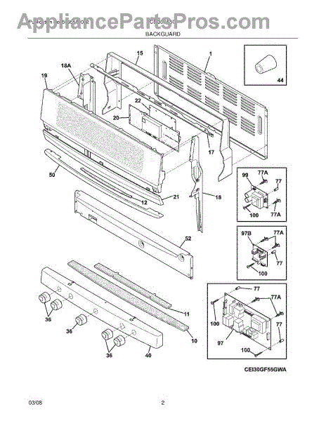 Parts for Frigidaire CEI30GF5GWA: 03 - Backguard Parts