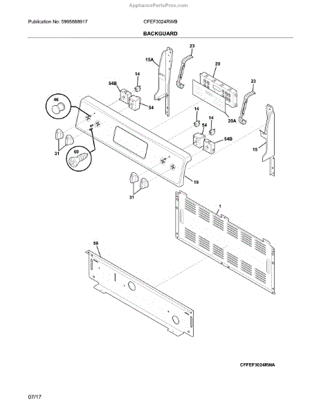 Parts for Frigidaire CFEF3024RWB: Backguard Parts