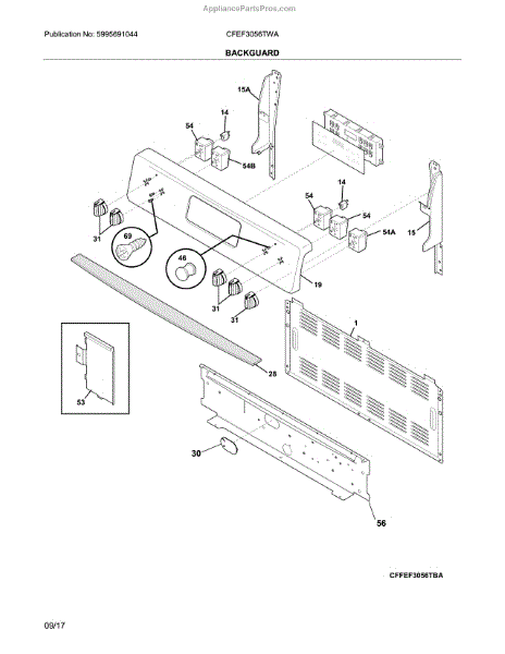 Parts for Frigidaire CFEF3056TWA: Backguard Parts