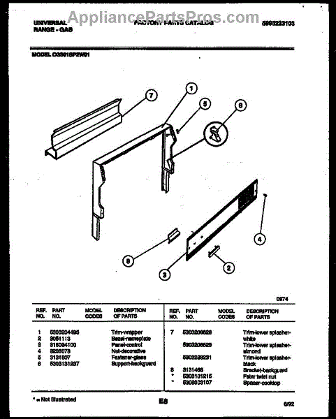 Parts for Frigidaire CG301SP2W1: 02 - Backguard Parts