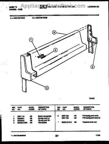 Parts for Frigidaire CGC1M1WXA: 02 - Backguard Parts