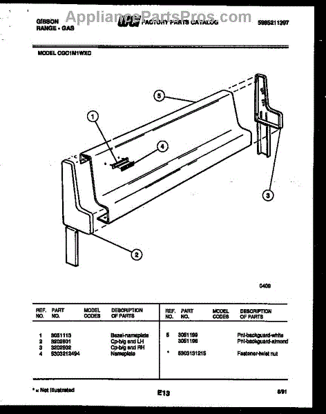 Parts for Frigidaire CGC1M1WXC: 02 - Backguard Parts