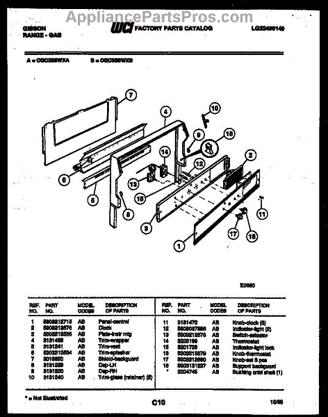 Parts for Frigidaire CGC3S5WXA: 02 - Backguard Parts