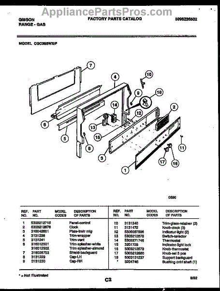 Parts for Frigidaire CGC3S5WXF: 02 - Backguard Parts