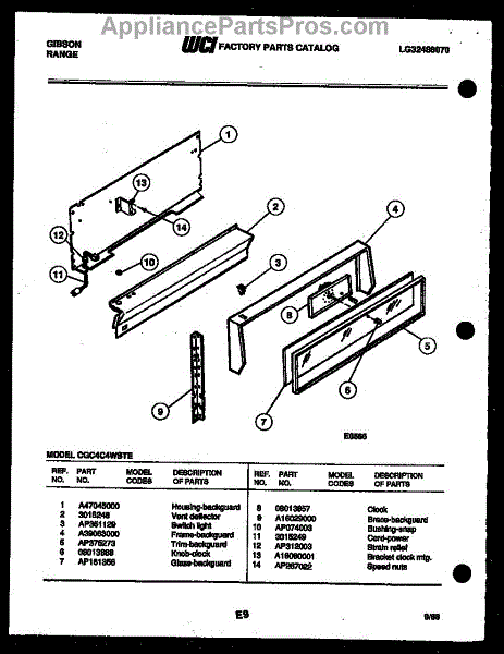 Parts for Frigidaire CGC4C4WSTE: 02 - Backguard Parts