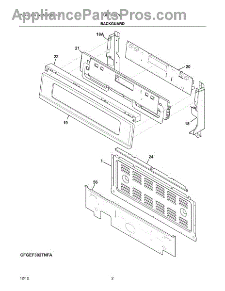 Parts for Frigidaire CGEF302TNF1: 03 - Backguard Parts