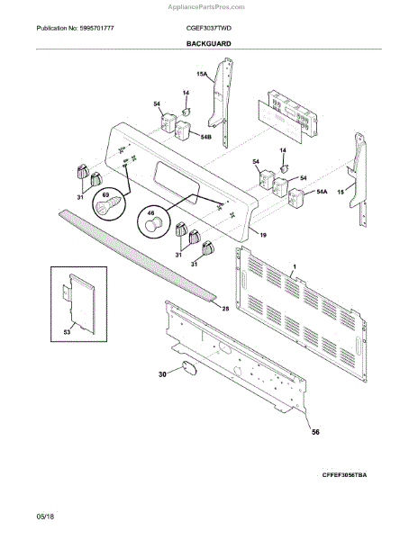 Parts for Frigidaire CGEF3037TWD: Backguard Parts