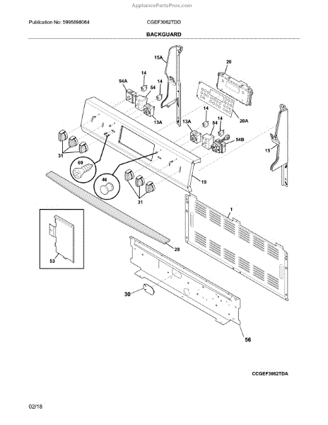 The Overlay is an OEM part for Frigidaire ranges and ovens. This part serves as the protective and decorative cover for the control panel. It features the control labels and markings that guide users in operating the appliance, making it an essential element for both functionality and aesthetics.