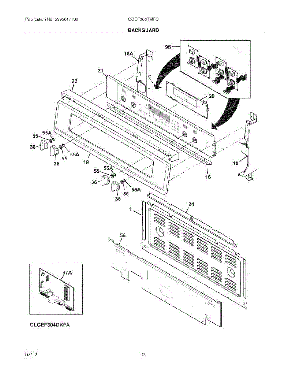 Parts for Frigidaire CGEF306TMFC: 03 - Backguard Parts