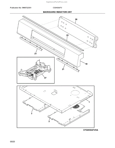 Parts for Frigidaire CGIH3047VFB: Backguard Parts