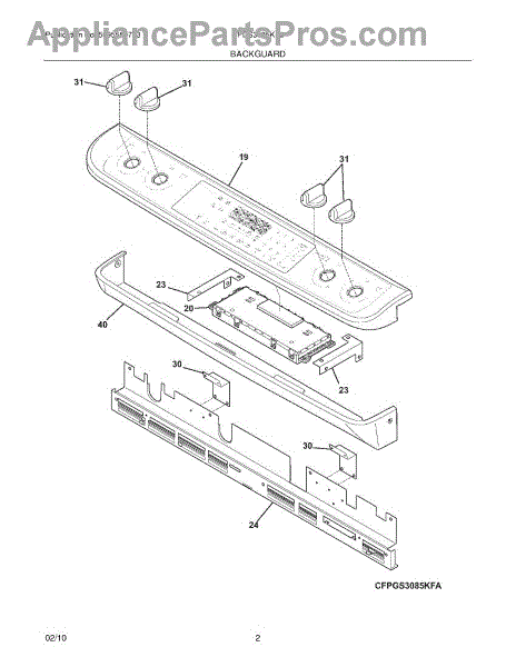 Parts for Frigidaire CPDS3085KF2: 03 - Backguard Parts