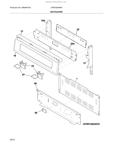Parts for Frigidaire CPEF3081MFE: Backguard Parts