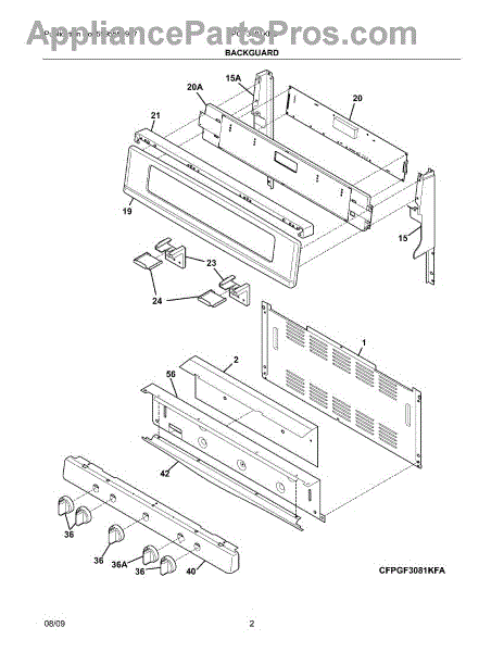 Control panel shield for gas ranges. Installs behind the knobs under the control panel. Replace if cracked, broken, or missing to protect wiring.