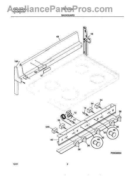 Parts for Frigidaire FEF304PHDB: 03 - Backguard Parts
