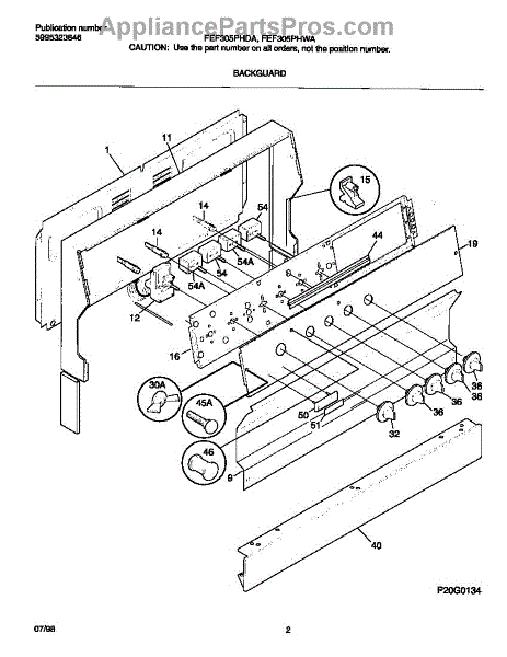 Parts for Frigidaire FEF305PHDA: 02 - Backguard Parts