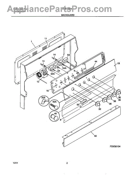 Parts for Frigidaire FEF305PHSC: 03 - Backguard Parts