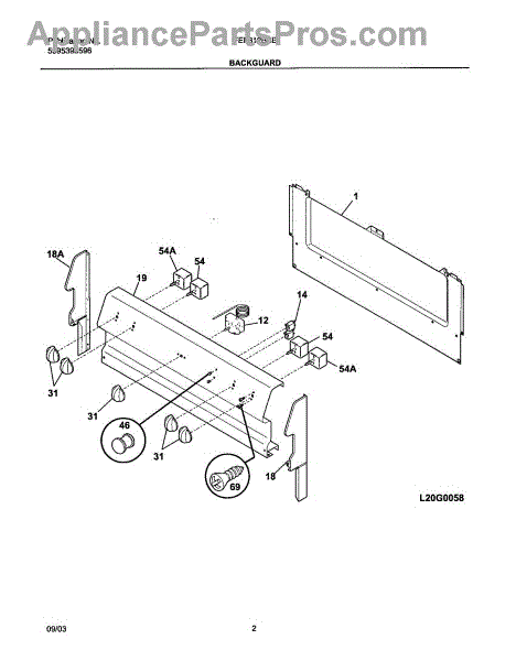 Parts for Frigidaire FEF312BSB: 03 - Backguard Parts