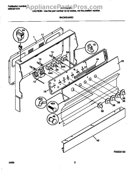Parts for Frigidaire FEF316WGTD: 02 - Backguard Parts