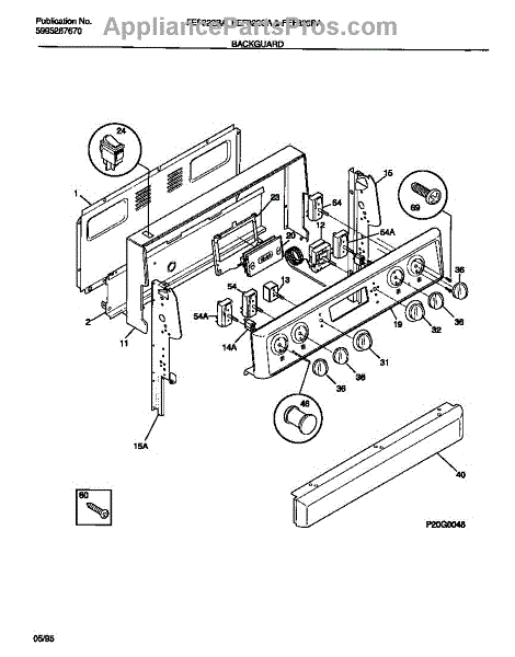 Parts for Frigidaire FEF322BAWC: 02 - Backguard Parts