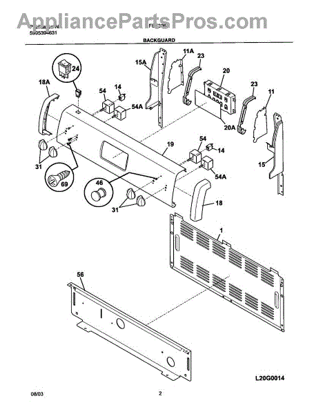 Parts for Frigidaire FEF326AUF: 03 - Backguard Parts