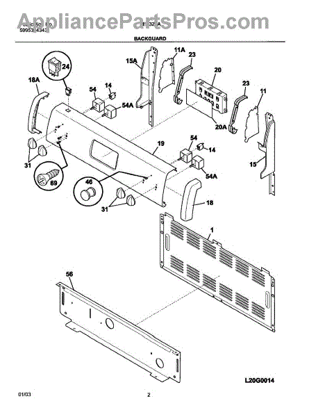 Parts for Frigidaire FEF326AWE: 03 - Backguard Parts