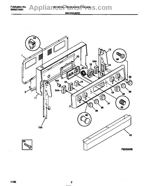 Parts for Frigidaire FEF350BAWE: 02 - Backguard Parts